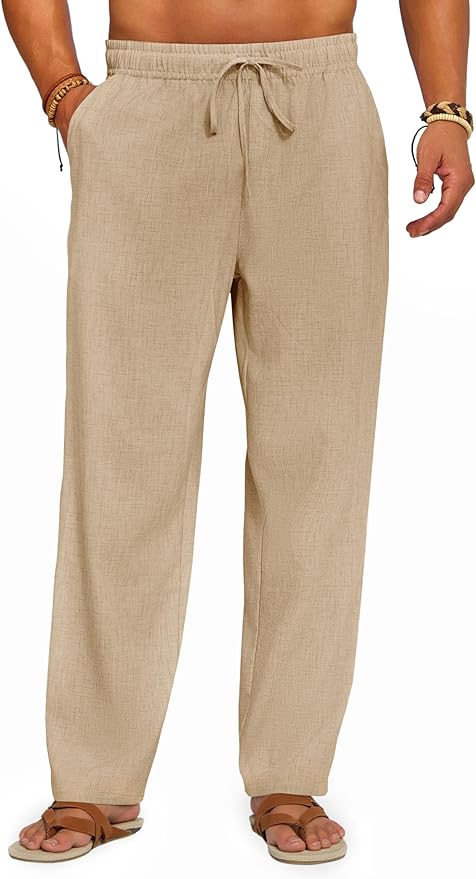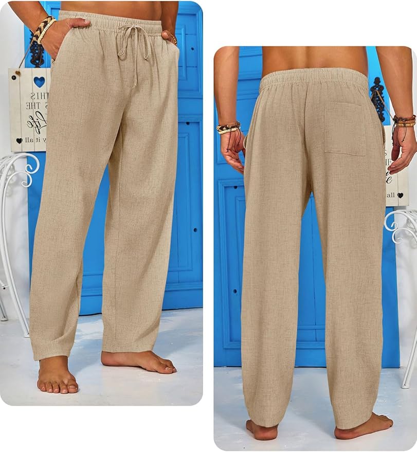 - Faux Linen Fabric — Men’s casual yoga pants are made of high quality polyester blend material, faux linen fabric, lightweight, soft and skin-friendly, breathable and relaxed, wrinkle-free, durable, providing a cool and comfortable fit experience